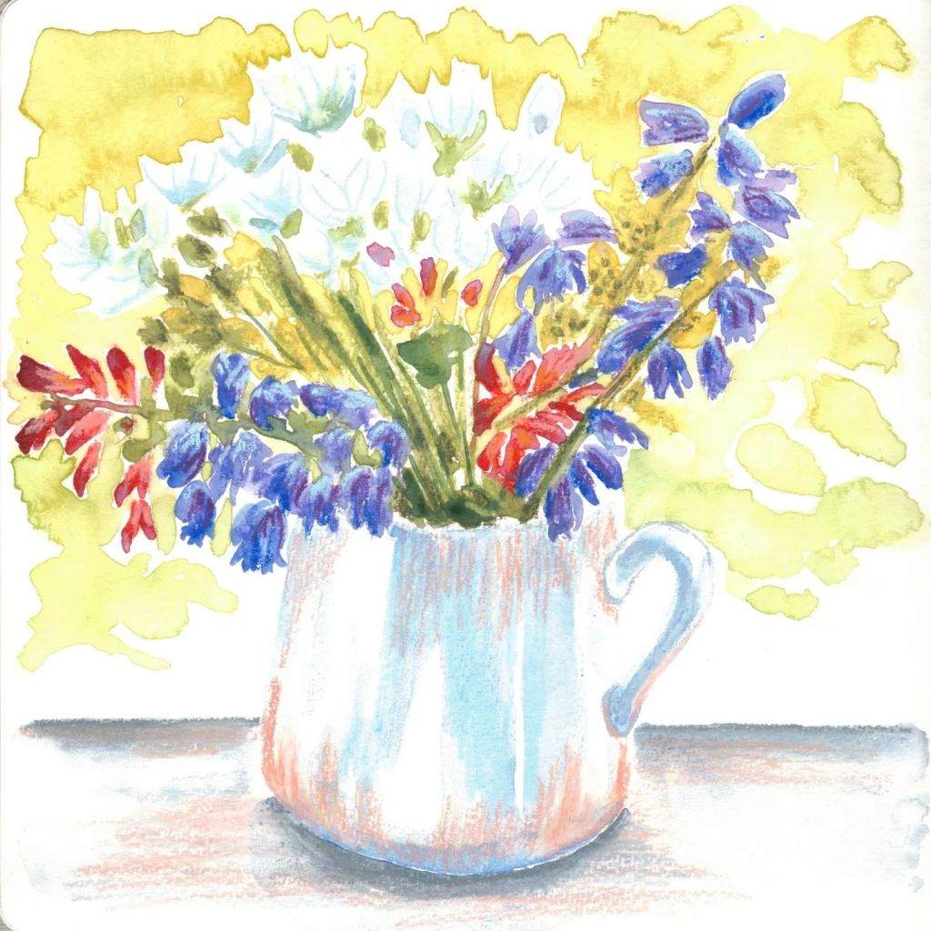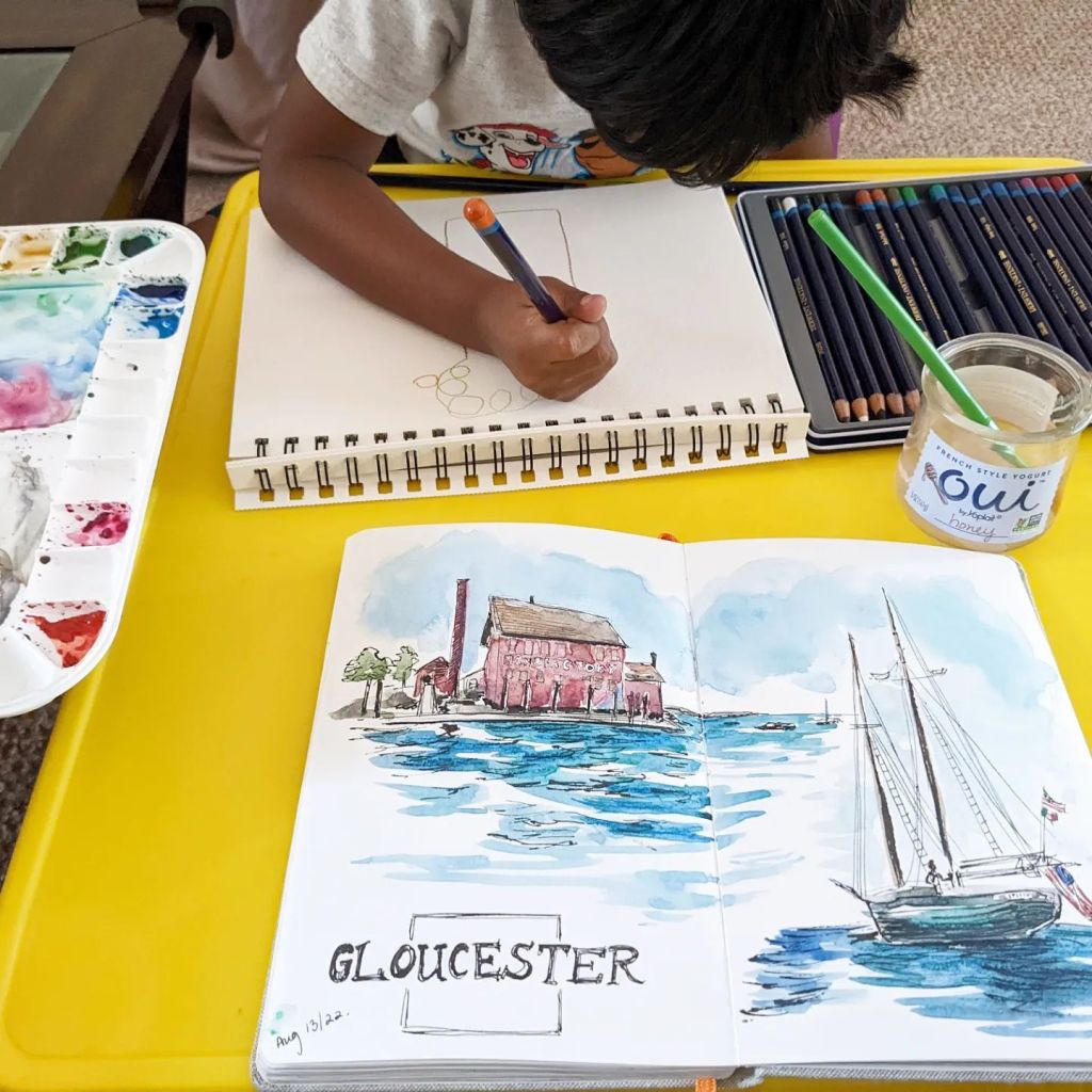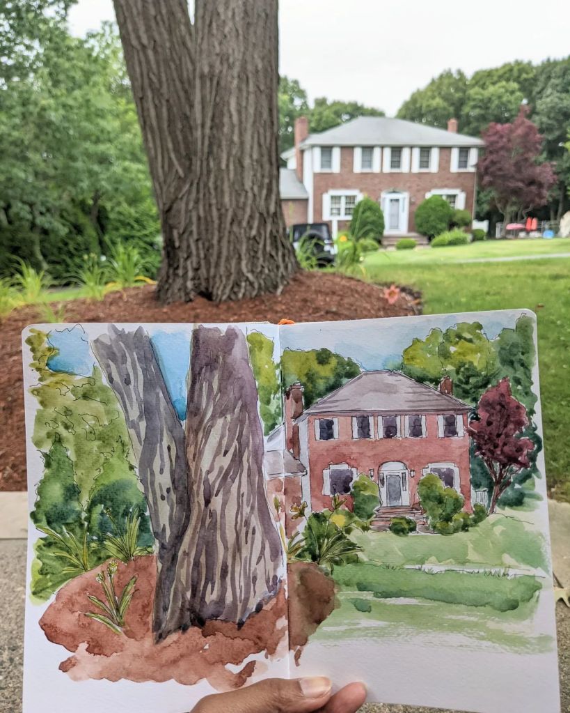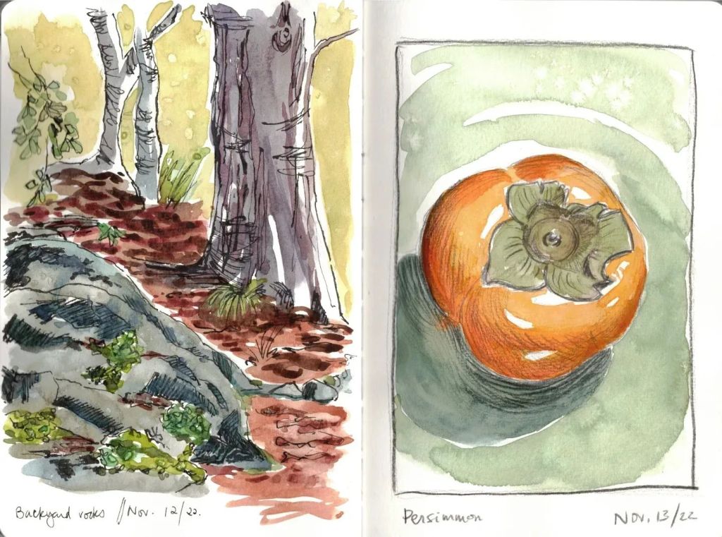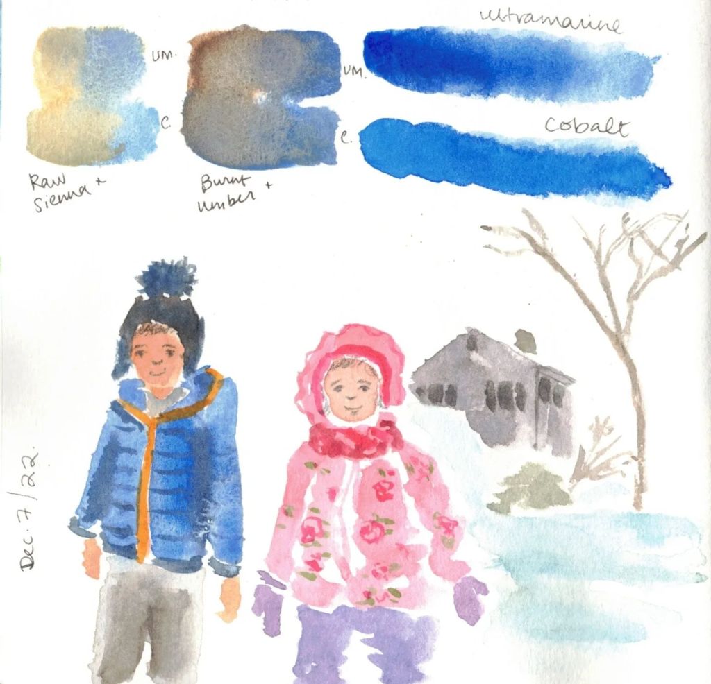 A few of my sketches from this year that show my progress. I started the year with a random doodle that sparked the idea of getting back to drawing and painting, and discovered “sketchbooking” which feels like a low pressure way to practice art.